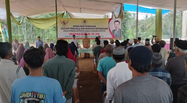 Pesawaran – Anggota DPRD Provinsi Lampung, Mustika Bahrum, melaksanakan kegiatan Sosialisasi Pembinaan Ideologi Pancasila dan Wawasan Kebangsaan (PIP-WK) di Dusun Tanjung Rahayu, Desa Tanjung Agung, Kecamatan Way Lima, Kabupaten Pesawaran, Sabtu (06/09/2025).